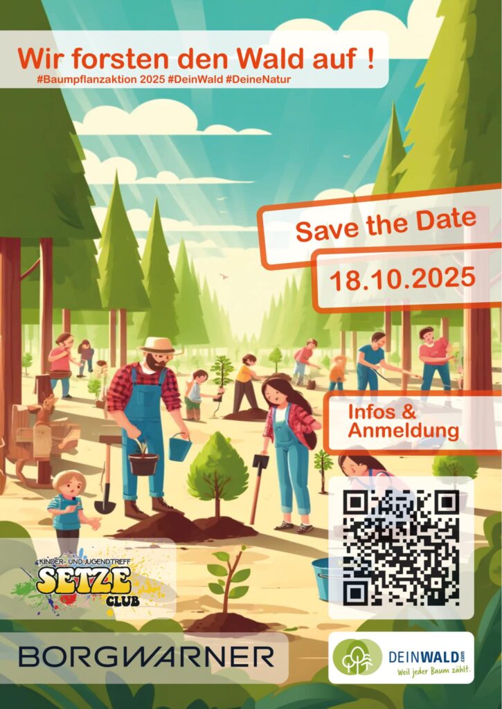 Der Kinder- und Jugendtreff „Auf der Setze“ und BorgWarner laden herzlich ein, zusammen mit der Forstgemeinschaft Bücheloh im Waldgebiet Traßdorf neue Bäume zu pflanzen.